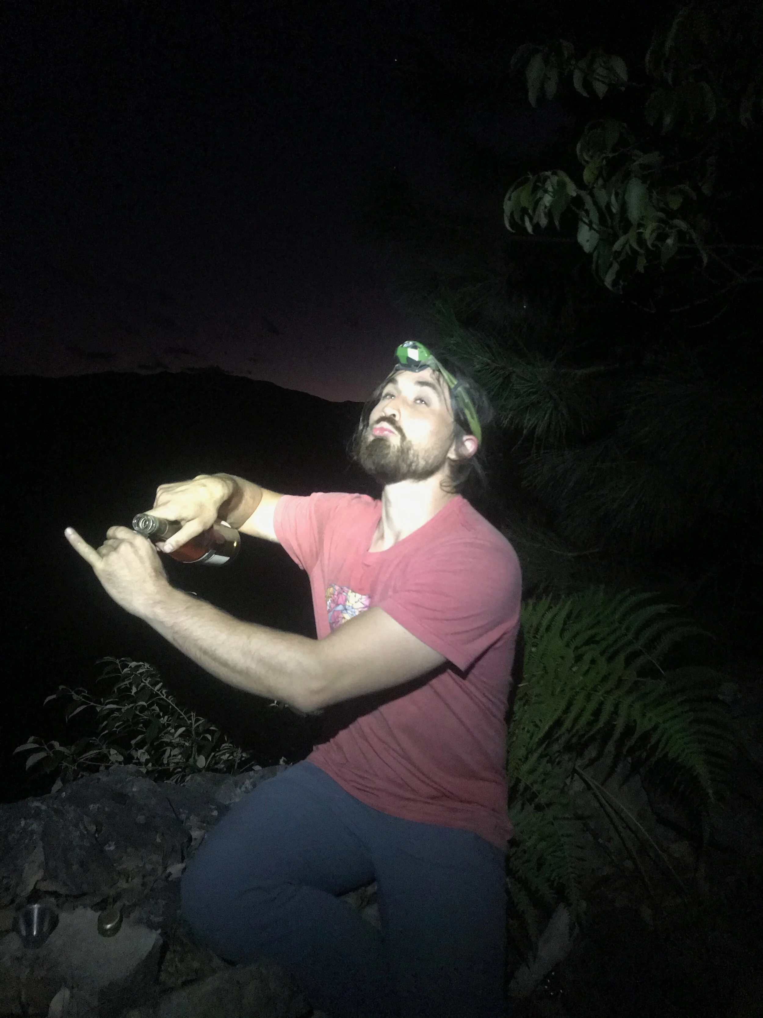 I skittered across the log bridges as my feet protested louder and louder with every step. We eventually crossed back into the undergrowth, our world shrinking in the darkness into an orb of light that only went as far as the bush branches would allow.