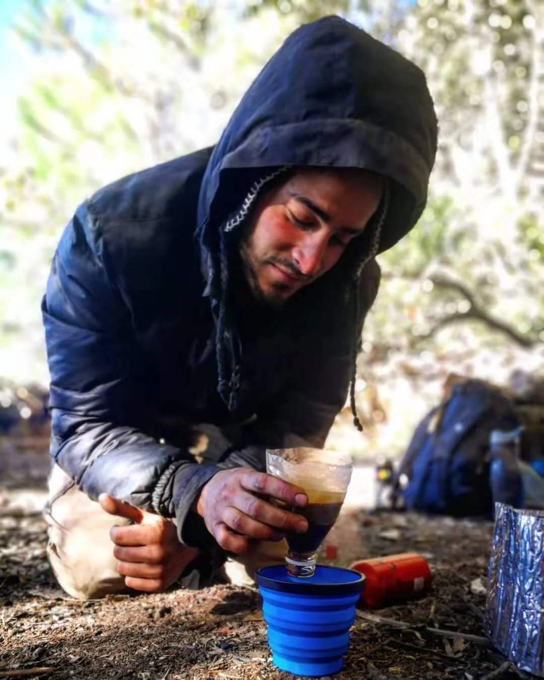 We both wandered back over to our bivy where we had cached food on a small inflated mat between our sleeping pads, covered in biscuits, dark chocolate, banana bread, and coffee. We sat down and began devouring the food.