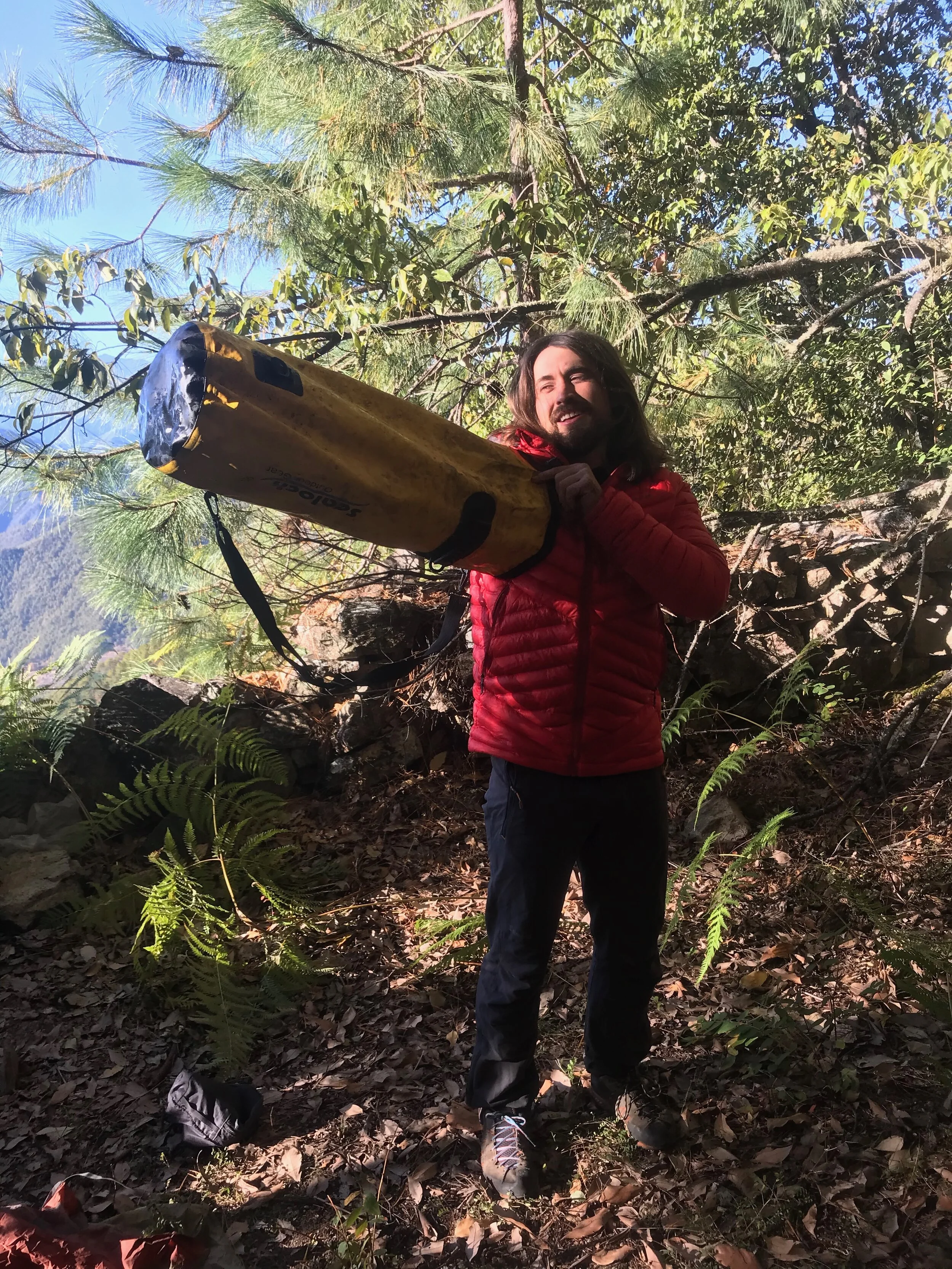 After what felt like hours–but turned out only to be 1.5 hours–a ghostly dome shape appeared in front of us. We wandered towards it to find a huge pile of pine needles a local had made, likely bedding material they were taking down the mountain for their livestock.
