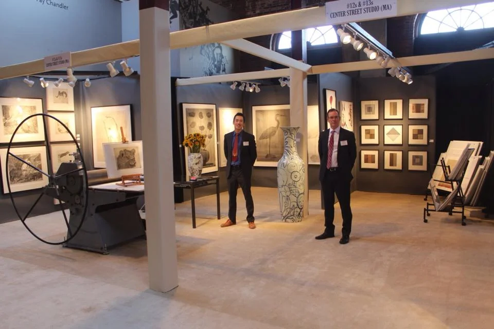 Part one of a two part series. Center Street Studio moved a 2300-lbs. etching press as an installation in the CSS booth for the AD 20/21 show at the Boston Center for the Arts, Cyclorama Building in Boston's South End. The task entailed craning solid pieces of steel weighing 500 lbs. and a big metal frame down multiple stories and moving them in time for the show.